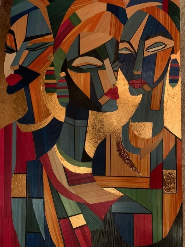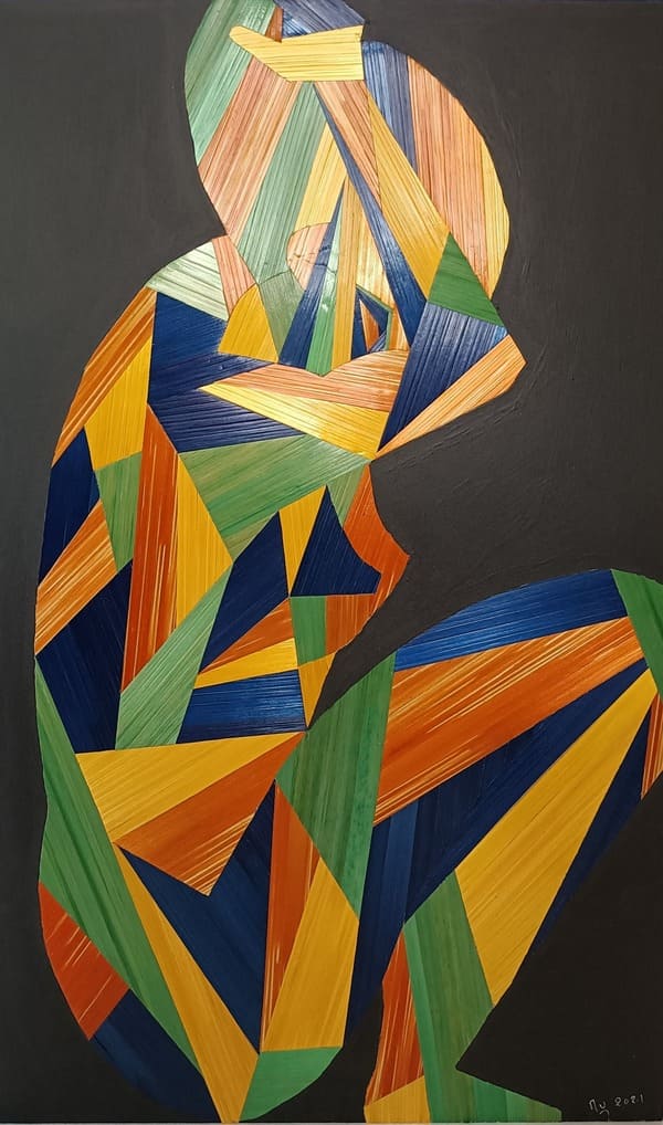 Ces tableaux sont réalisés avec de la paille de seigle, teintée de pigments naturels.
